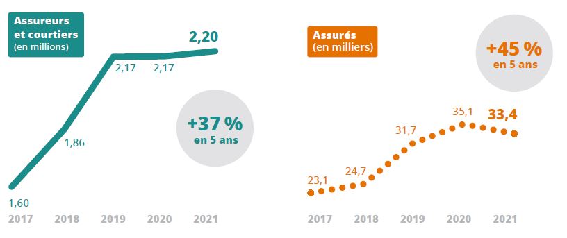 In 2021, insurer and broker consultations on the Fichier central des sinistres automobiles (FCSA) peaked. However, there was a 5% drop in policyholder visits after a record year in 2020. Over a five-year period, there has been a significant surge in visits, indicating that more consumers shop around for auto insurance.